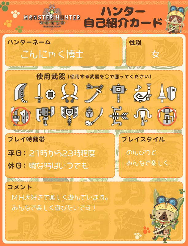 ハンター自己紹介カード